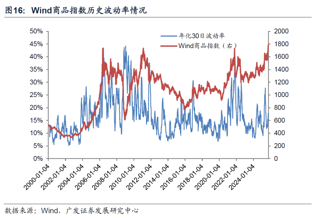 再来看一下活跃商品指数的横截面波动率,统计窗口为2025年三季度,波动率按照每日涨跌幅测算,如下图所示。