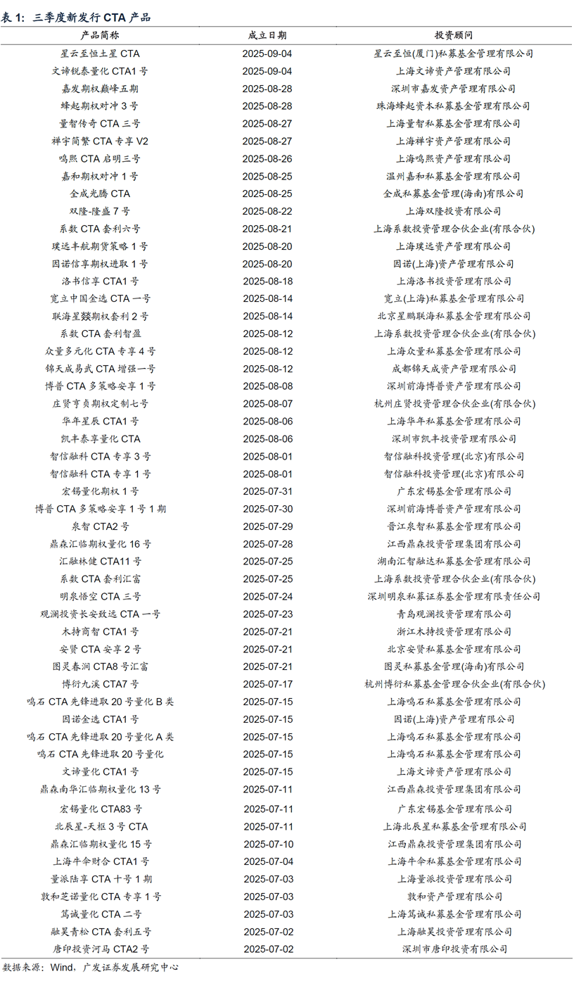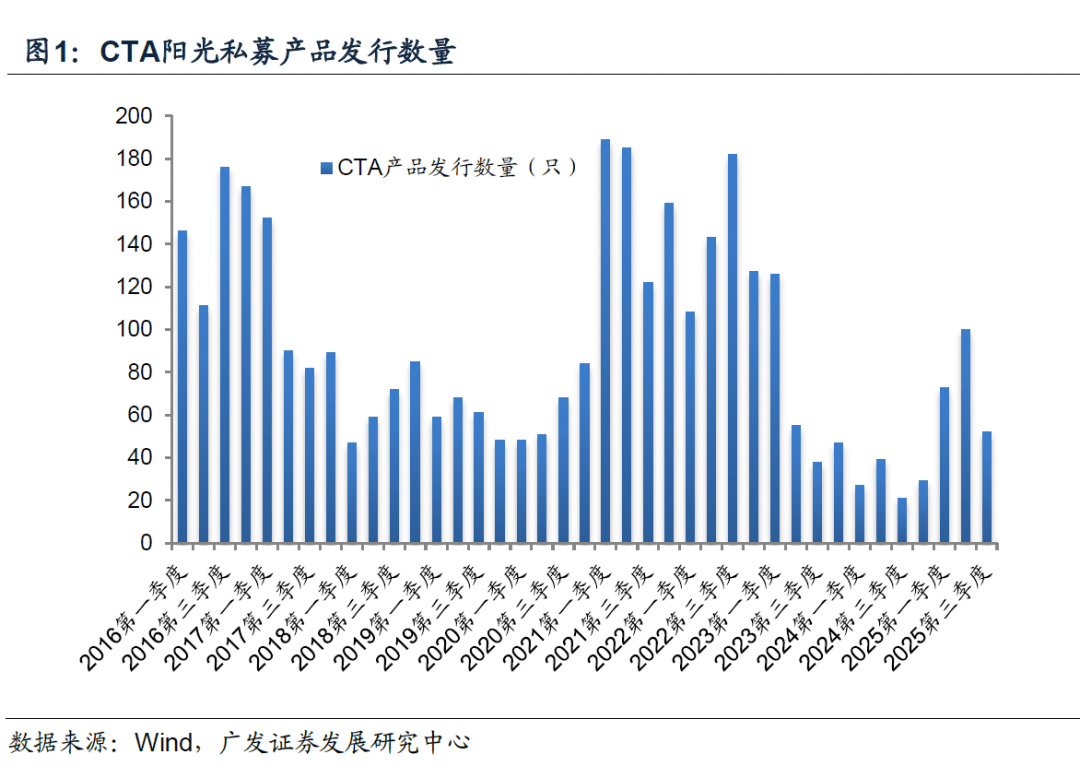 截至2025年9月底,根据Wind管理期货投资策略类私募基金的数据,2025年三季度新发行CTA产品52只(由于数据公布存在延迟,统计数量可能存在缺失),发行数量相较上季度出现明显下降。
