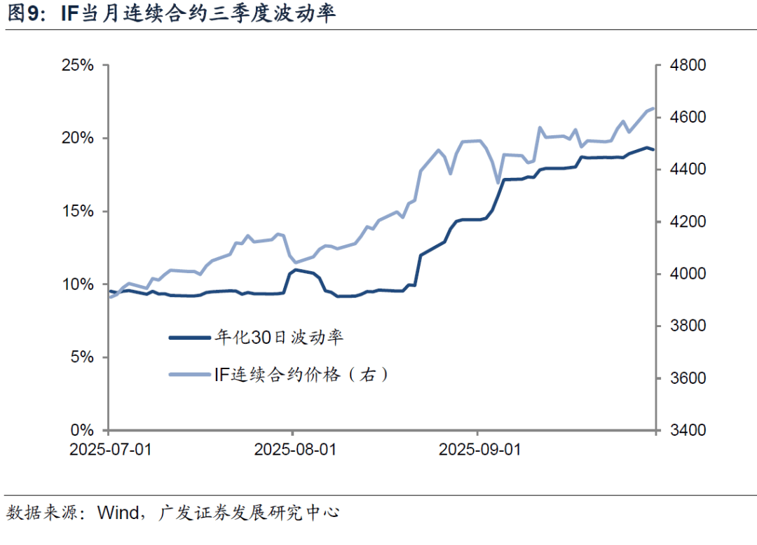 波动率方面,我们计算了IF当月连续合约的30天涨跌幅波动率,如下图所示。一般来说,波动率越高的市场,相关CTA策略的收益会越高。三季度股指波动率整体呈现上升趋势。