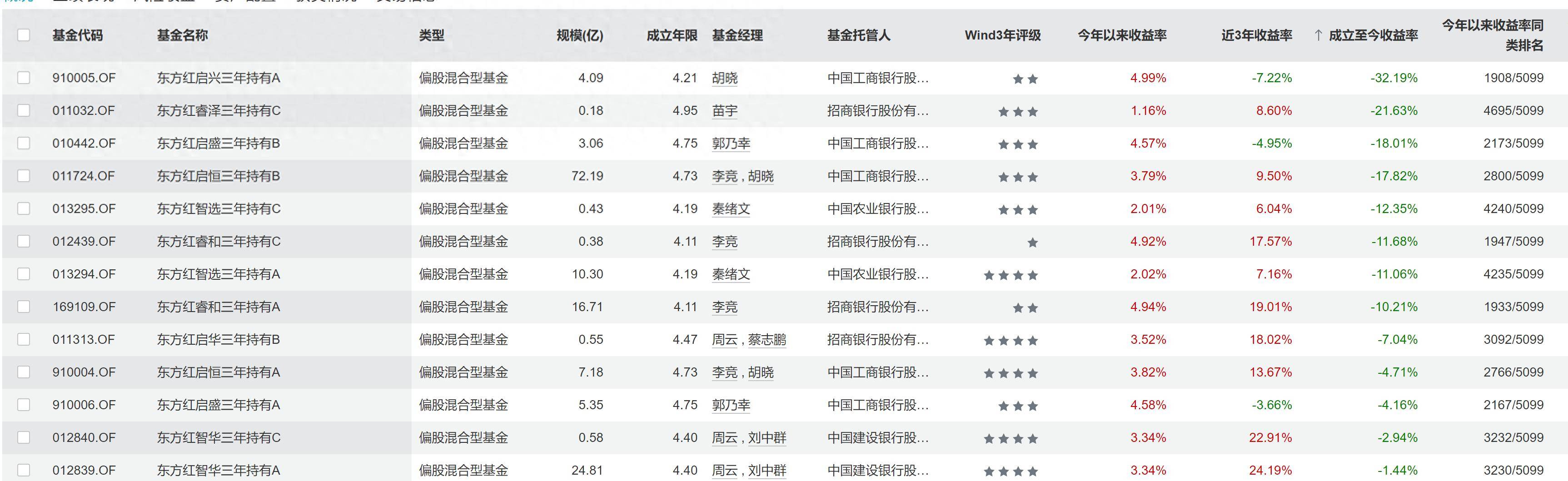 但新发市场的“热闹”,难以掩盖存量产品的业绩颓势。Wind数据显示,截至2025年末,东方红资管旗下13只成立满四年的三年持有期产品未实现正收益。其中,东方红启兴三年持有A累计亏损幅度达32%,即便经历2025年市场上涨行情,仍有数只产品亏损幅度超10%(数据截至2026年1月9日)。